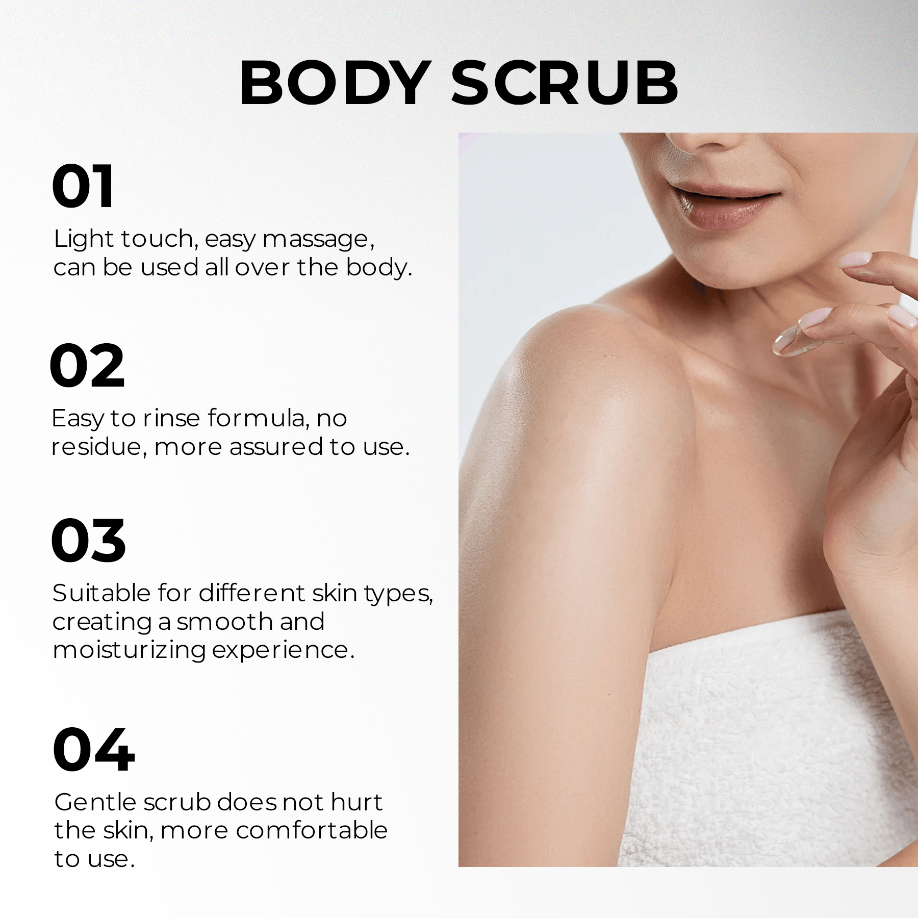 Many body scrubs use harsh ingredients that can irritate and dry out your skin, while our gentle, hydrating formula exfoliates effectively and keeps your skin soft, smooth, and nourished, making it perfect for all skin types.