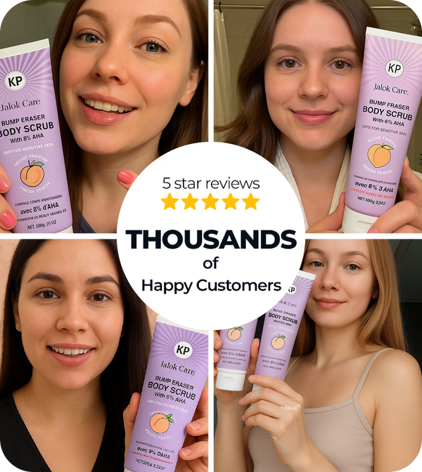 Buff away dullness, hydrate deeply, and glow naturally with our peach-scented KP Bump Eraser Body Scrub. It is gentle on skin and delivers powerful results for smooth, bright, and healthy-looking skin.
